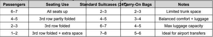 All luggage must be stored in the trunk; no bags are permitted inside the passenger cabin.